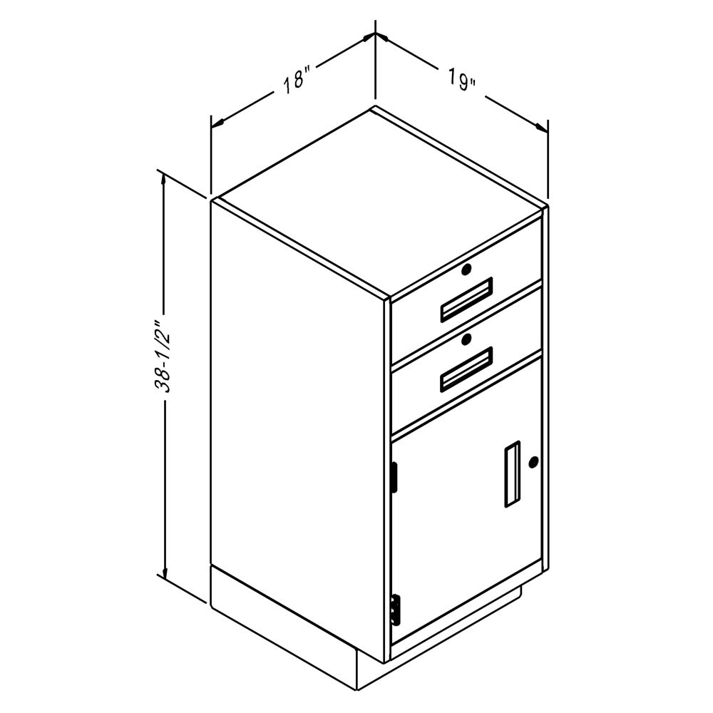 - Two (2) locking box drawers and one (1) cabinet with adjustable shelf