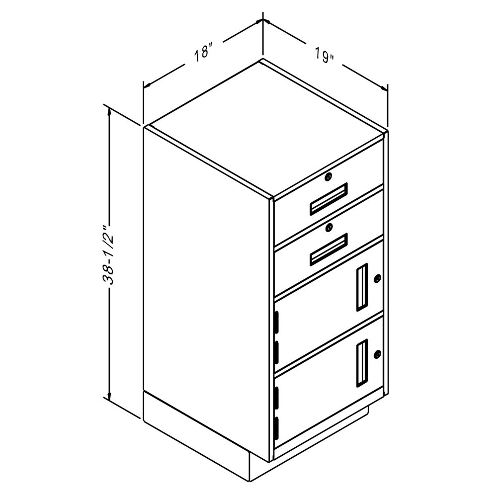 - Two (2) Locking pull-out box drawers have inner dimensions of 15-1/2Wx 4H x 15-1/2D, trays are not included