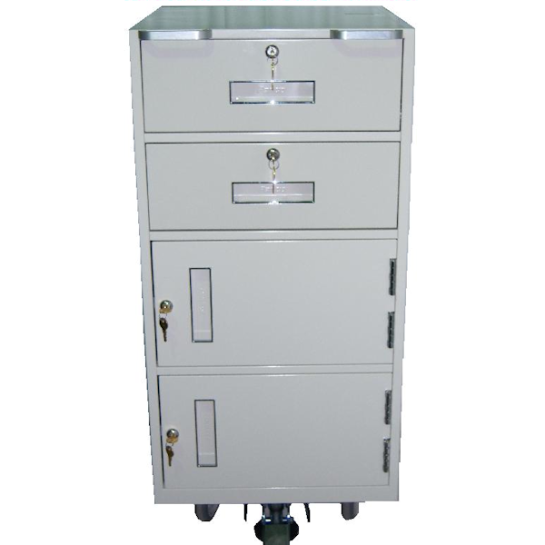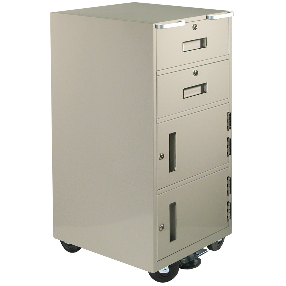 - Keyed locks on both drawers and both cabinets