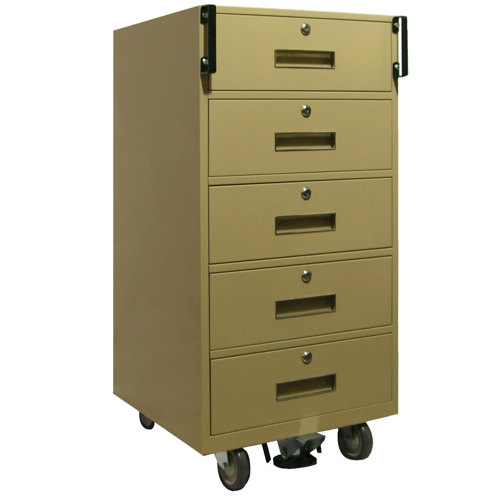 - Five (5) locking pull-out box drawers have inner dimensions of 15-1/2Wx 4H x 15-1/2D, trays are not included