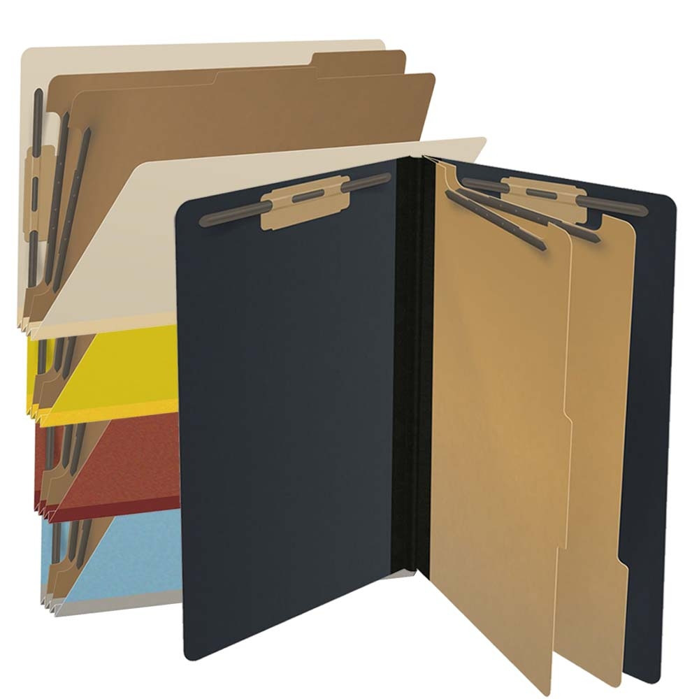 Legal Size Classification Folders with dividers and fasteners to keep papers secure and organized. Effectively organize 14” x 8½” documents (Legal Size). Spine expands 2-inches for bulky files!