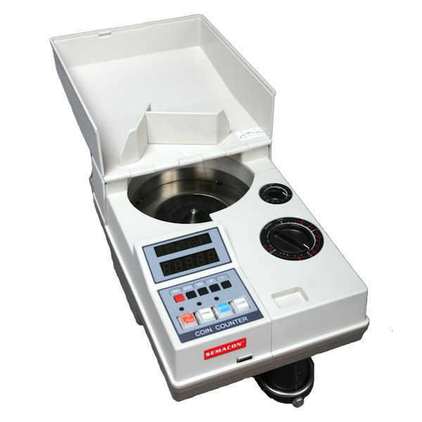 - The Semacon S-120 coin counter with batching feature for packaging coins into coin wrappers