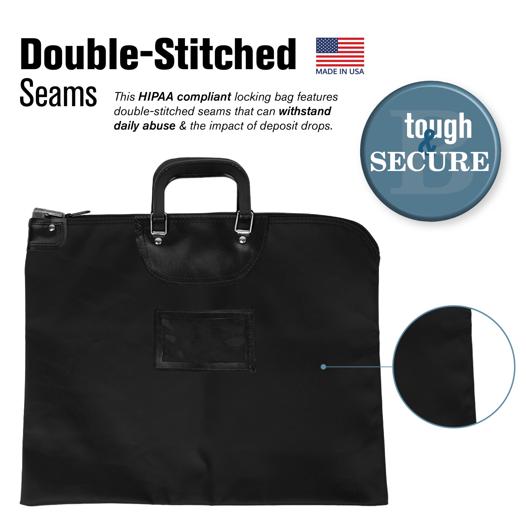 Featuring double-stitched seams, this HIPAA compliant courier bag is built to withstand daily abuse and the impact of night deposit drops, providing reliable performance in any situation. Please note that fabric thickness and color may vary slightly due to bulk ordering and production timelines. For added peace of mind, each bag includes 2 keys, ensuring secure access for authorized personnel.