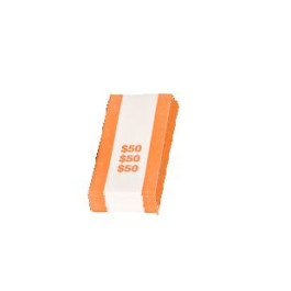 Pre-Glued Currency Bands with Denomination - Orange - Holds $50.00
