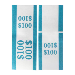 Pre-Glued Currency Bands with Denomination - Blue - Holds $100.00