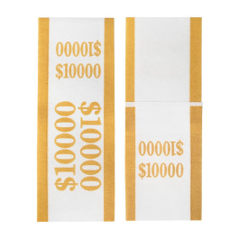 Pre-Glued Currency Bands with Denomination - White - Blank