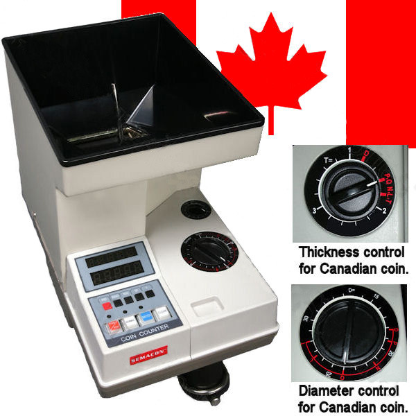 - In the past, whenever a Canadian customer uses a Coin Counter, they must manually determine the correct settings of the adjustment knobs (on Semacon or any other brand of machine) and mark them accordingly because the pre-marked US coin settings do not work correctly with their coins. With these new models, the precise settings for each of the Canadian coins is indicated on the machine directly so they merely set the knobs to the coin size they are counting and the machine will work perfectly.